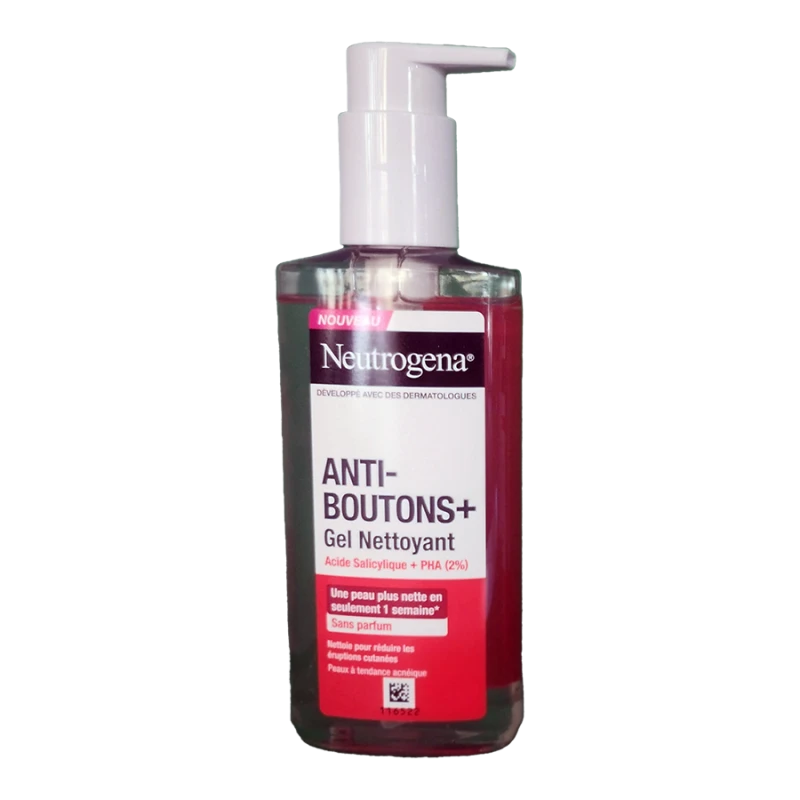ANTI BOUTONS+ GEL NETTOYANT VISAGE 200ML NEUTROGENA purifie et affine le grain de peau des peaux sujettes à l’acné.