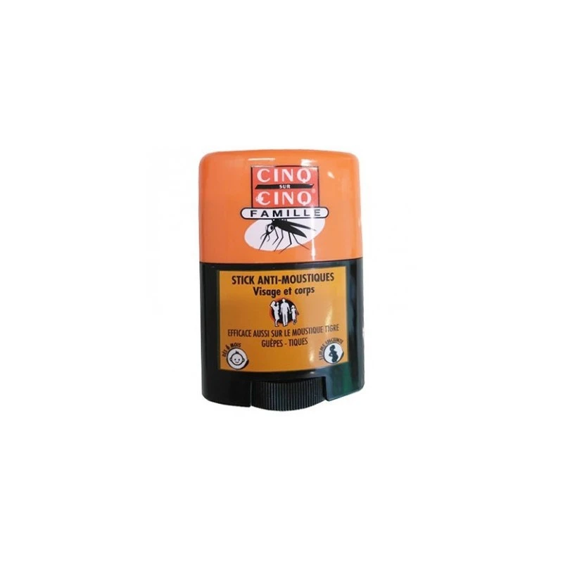 DESCRIPTION DE CINQ SUR CINQ FAMILLE STICK ANTI-MOUSTIQUES VISAGE ET CORPS 20ML