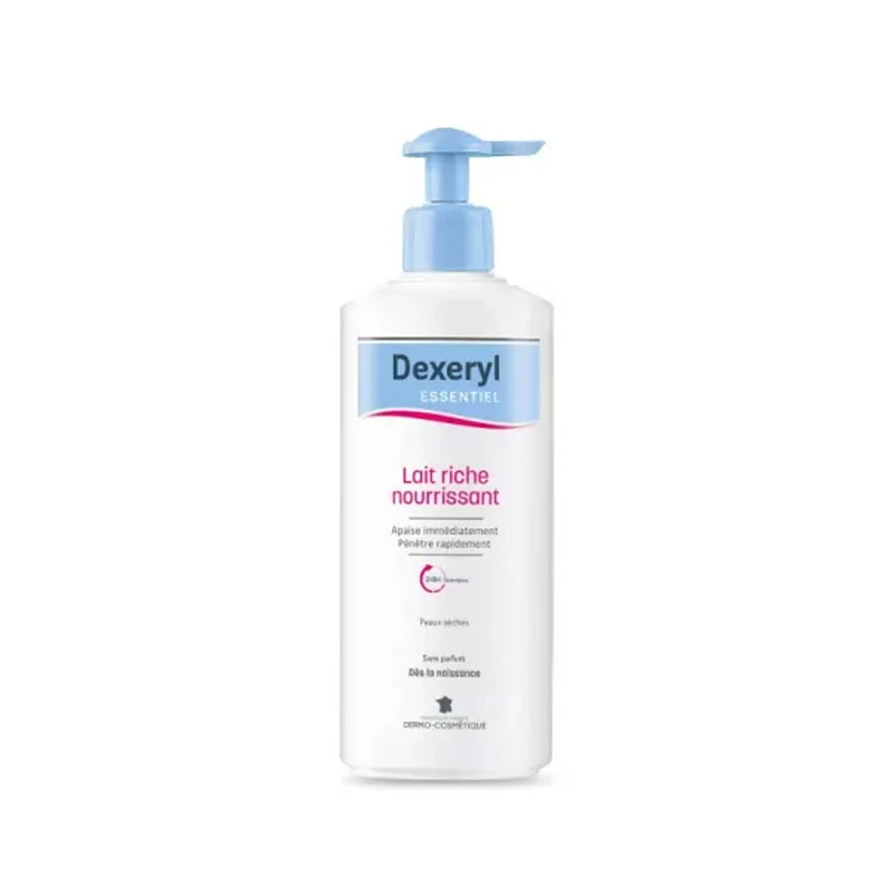 DEXERYL ESSENTIEL LAIT RICHE NOURRISSANT 500ML PIERRE FABRE HEALTHCARE hydrate et nourrit toute la famille au quotidien. Sa formule lait ne colle pas et pénètre rapidement.