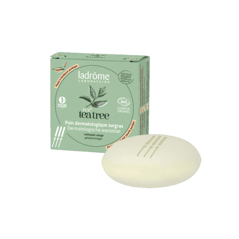 PAIN DERMATOLOGIQUE SURGRAS PUR TEA TREE BIO 105G LADRÔME convient pour les peaux à problèmes ( Boutons, Acné, Comédons )